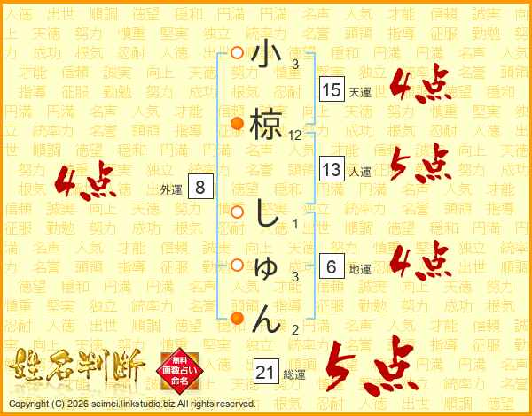 小椋しゅんさんの総運は21画の5点!