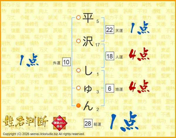 平沢しゅんさんの人運は18画の4点!