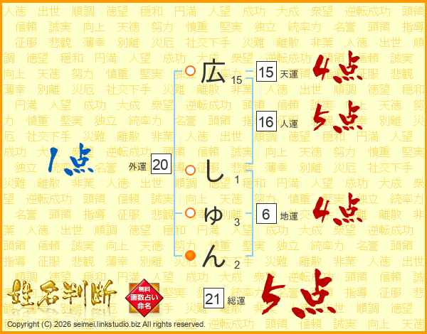 広しゅんさんの総運は21画の5点!