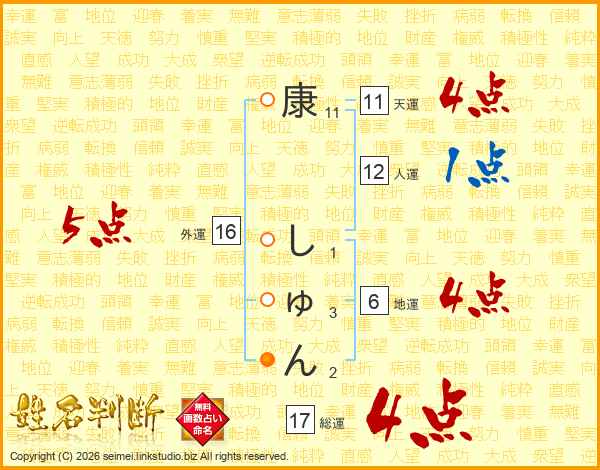 康しゅんさんの天運は11画の4点!