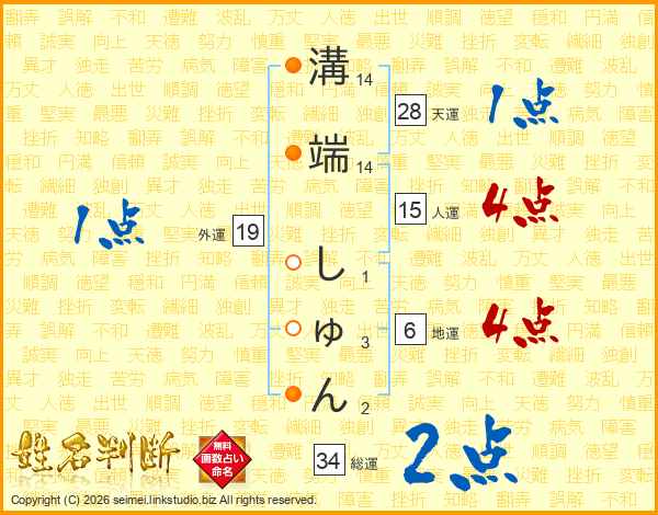 溝端しゅんさんの総運は34画の2点!