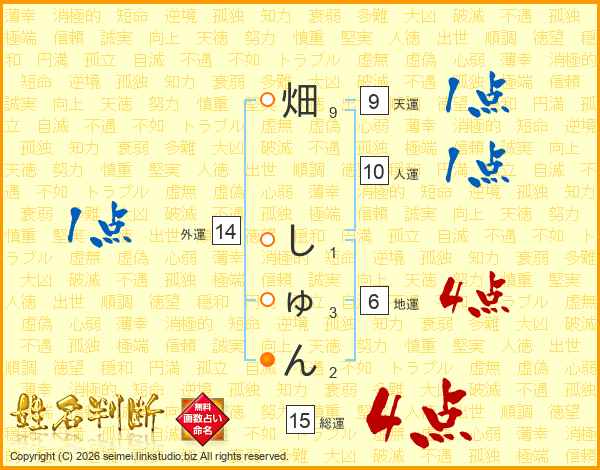 畑しゅんさんの総運は15画の4点!