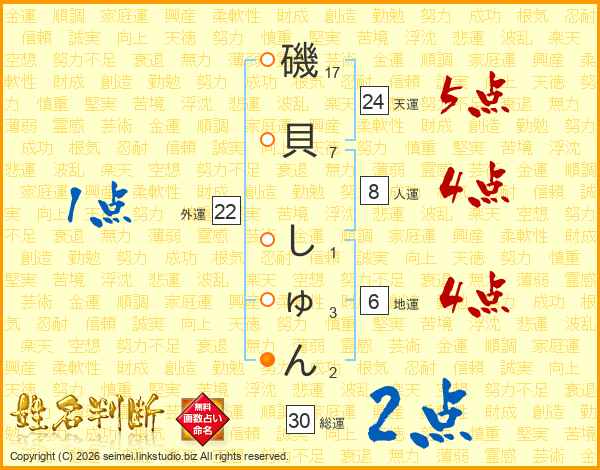 磯貝しゅんさんの総運は30画の2点!