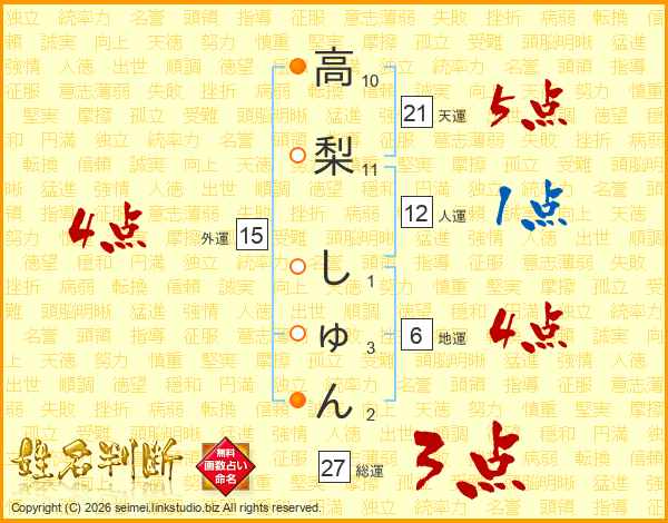 高梨しゅんさんの天運は21画の5点!