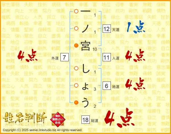 一ノ宮しょうさんの総運は18画の4点!