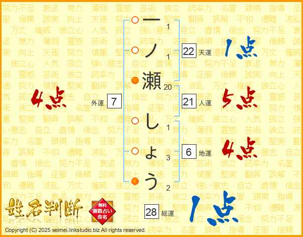 一ノ瀬しょうさんの総運は28画の1点!