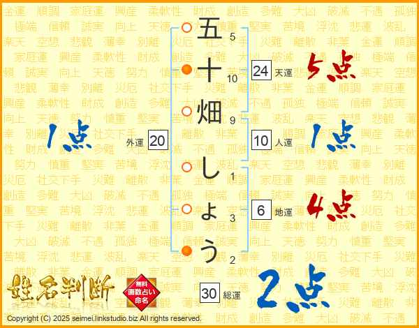 五十畑しょうさんの総運は30画の2点!