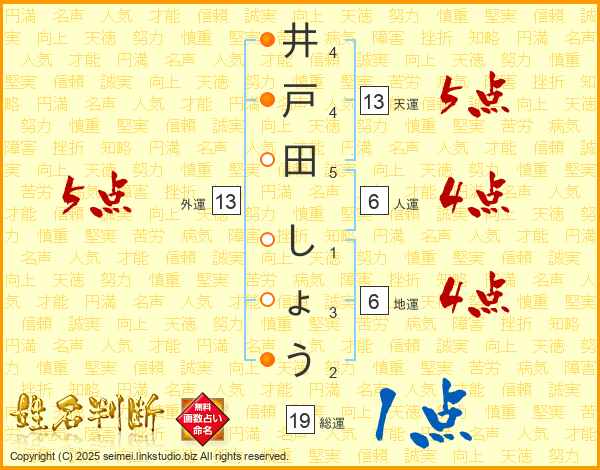 井(4画)戸(4画)田(5画) し(1画)ょ(3画)う(2画)