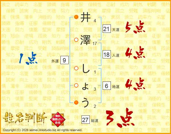 井澤しょうさんの総運は27画の3点!