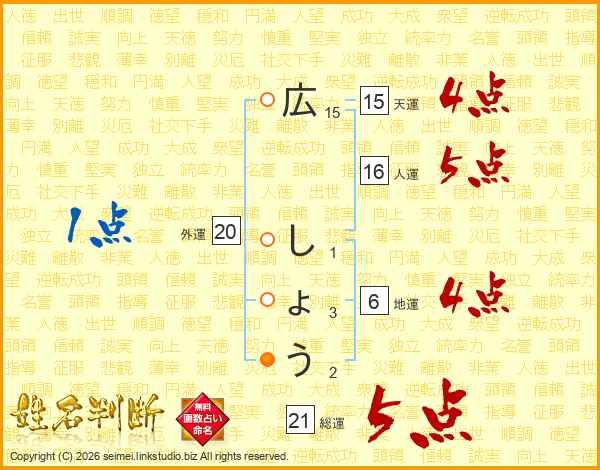 広しょうさんの総運は21画の5点!