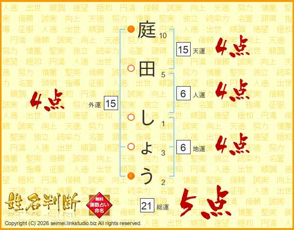 庭田しょうさんの総運は21画の5点!