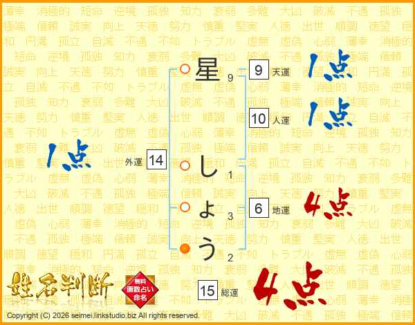 星しょうさんの総運は15画の4点!
