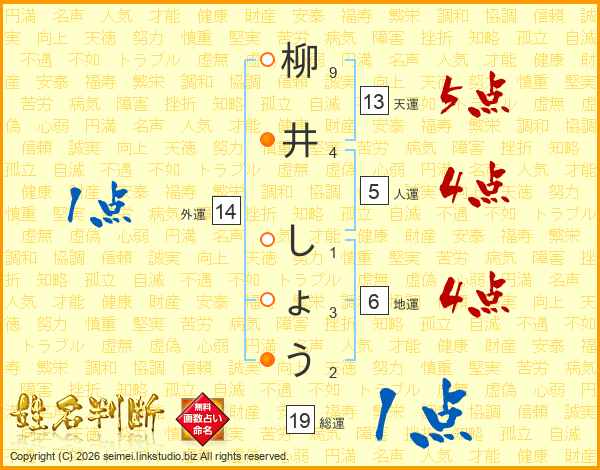 柳井しょうさんの天運は13画の5点!