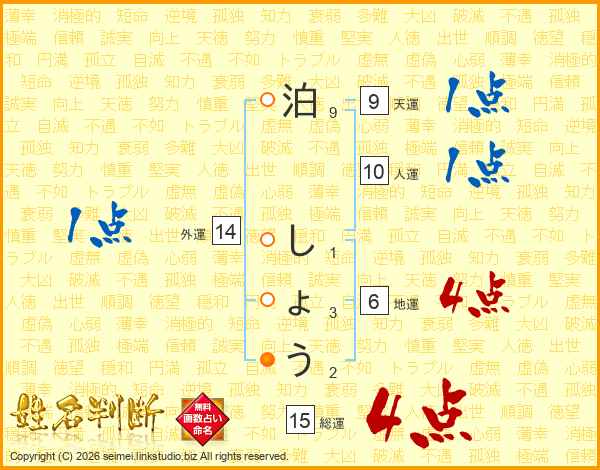 泊しょうさんの総運は15画の4点!