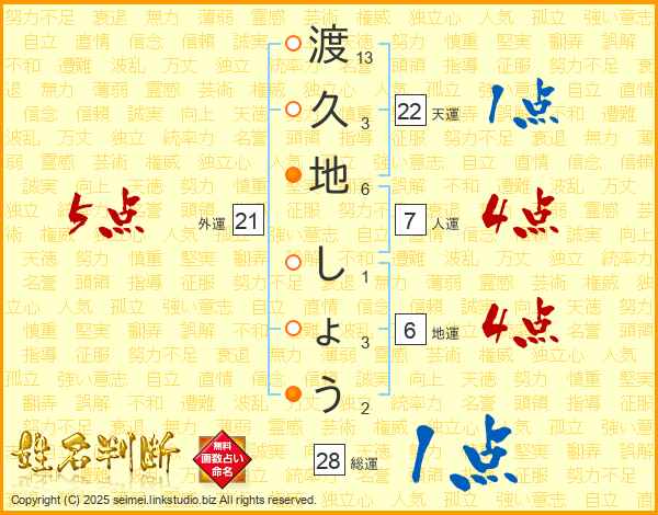 渡久地しょうさんの外運は21画の5点!