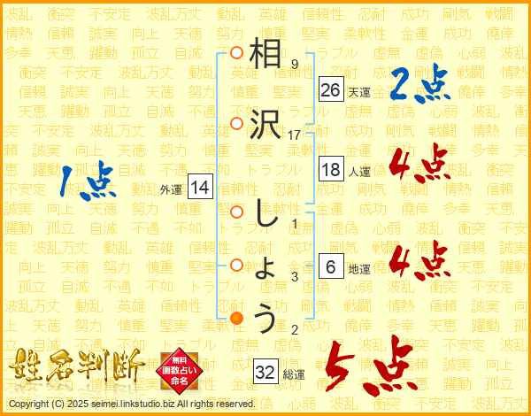相(9画)沢(17画) し(1画)ょ(3画)う(2画)