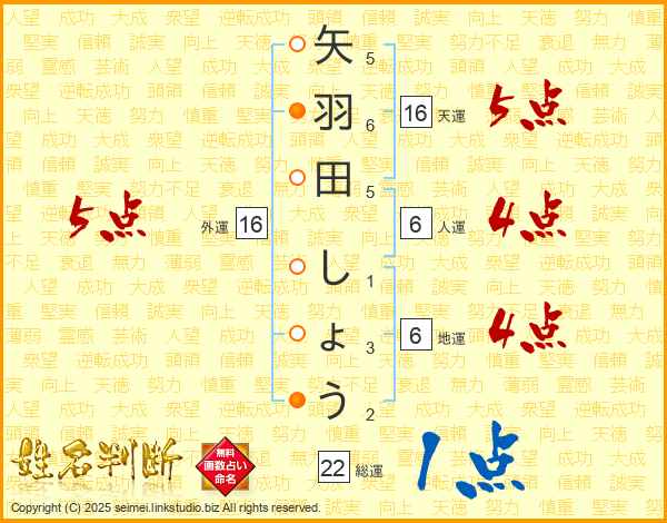 矢羽田しょうさんの総運は22画の1点!