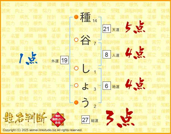 種谷しょうさんの総運は27画の3点!