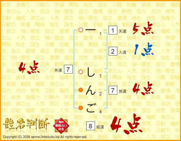 一しんごさんの総運は8画の4点!