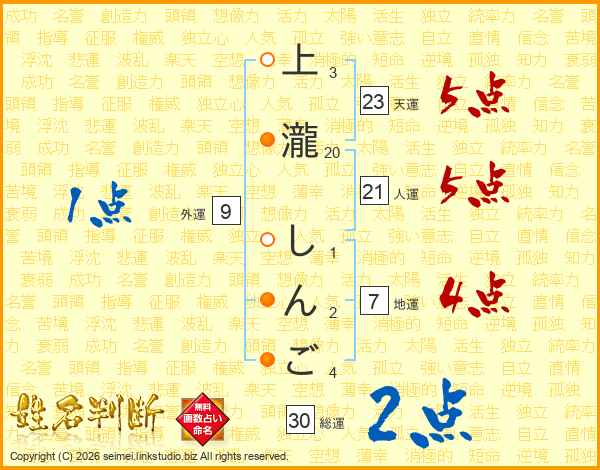 上瀧しんごさんの総運は30画の2点!