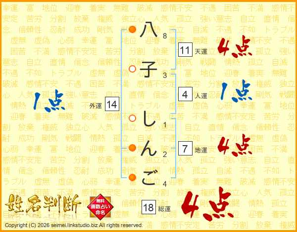 八子しんごさんの総運は18画の4点!