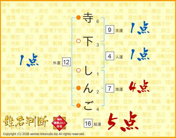 寺(6画)下(3画) し(1画)ん(2画)ご(4画)