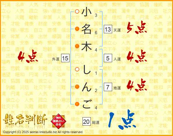 小名木しんごさんの外運は15画の4点!