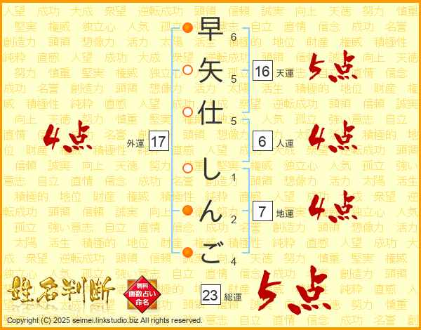 早(6画)矢(5画)仕(5画) し(1画)ん(2画)ご(4画)