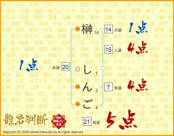 榊しんごさんの総運は21画の5点!