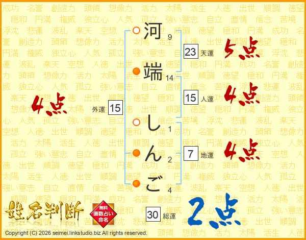 河端しんごさんの天運は23画の5点!