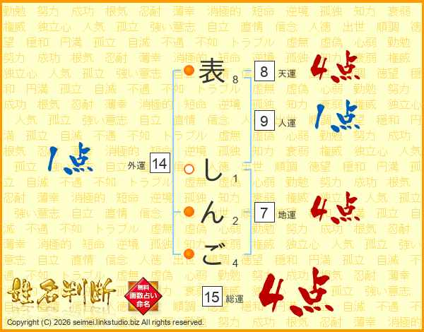 表しんごさんの総運は15画の4点!