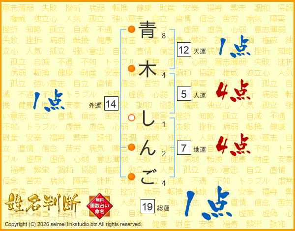 青木しんごさんの総運は19画の1点!