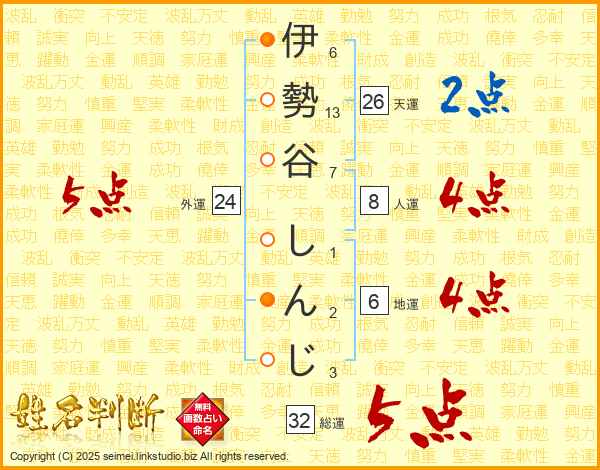伊勢谷しんじさんの総運は32画の5点!
