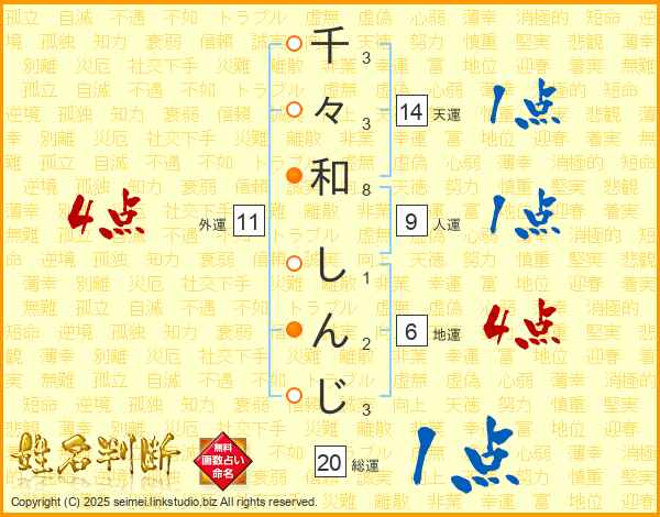 千々和しんじさんの天運は14画の1点!