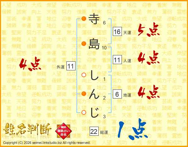 寺島しんじさんの総運は22画の1点!