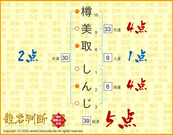 樽(16画)美(9画)取(8画) し(1画)ん(2画)じ(3画)