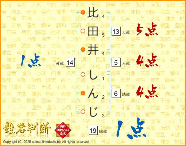 比田井しんじさんの総運は19画の1点!