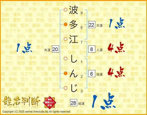 波多江しんじさんの総運は28画の1点!