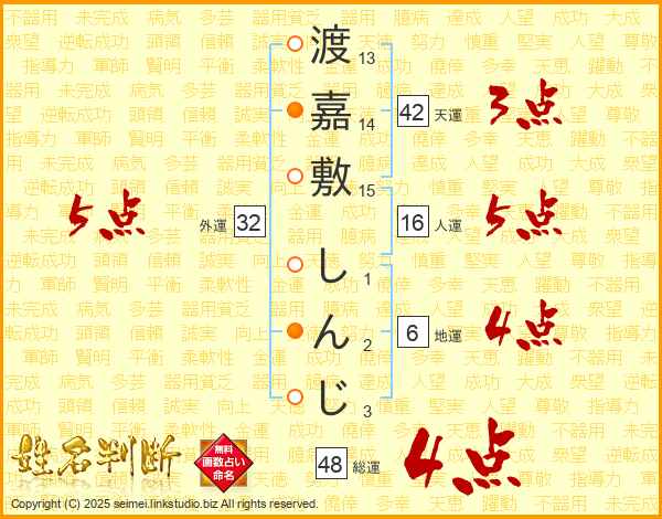渡嘉敷しんじさんの総運は48画の4点!