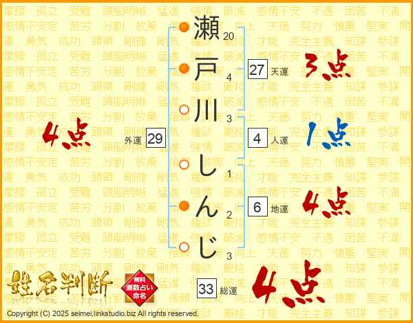 瀬戸川しんじさんの総運は33画の4点!