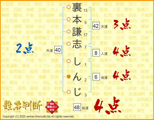 裏本謙志しんじさんの天運は42画の3点!