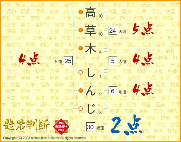 高草木しんじさんの総運は30画の2点!