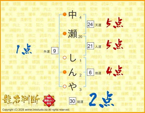 中瀬しんやさんの総運は30画の2点!