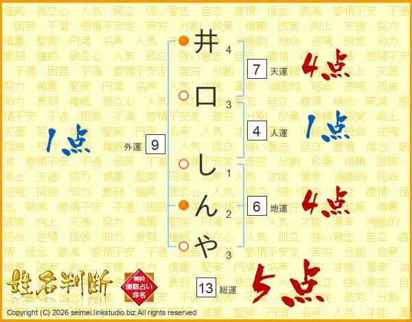 井口しんやさんの総運は13画の5点!