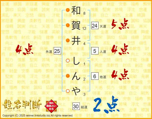 和賀井しんやさんの天運は24画の5点!