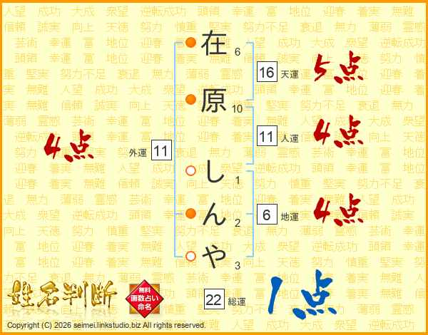 在原しんやさんの天運は16画の5点!