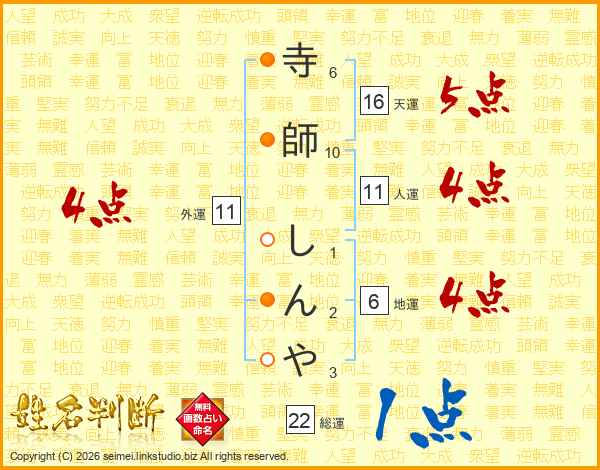 寺師しんやさんの人運は11画の4点!