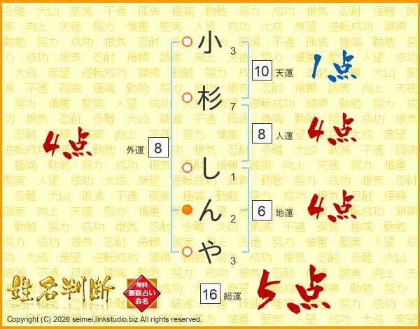 小杉しんやさんの総運は16画の5点!