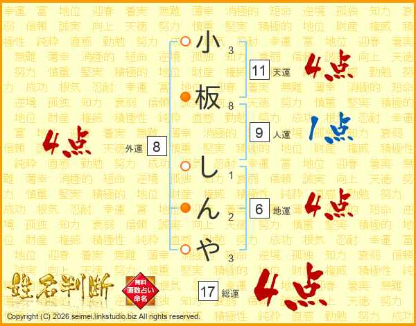小板しんやさんの総運は17画の4点!