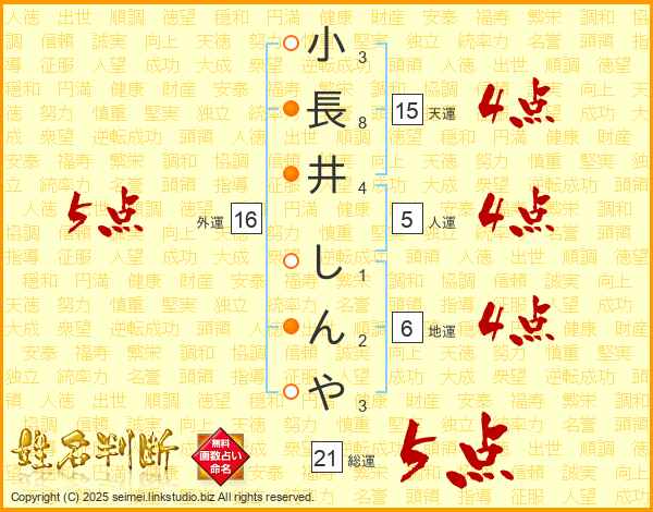小長井しんやさんの総運は21画の5点!